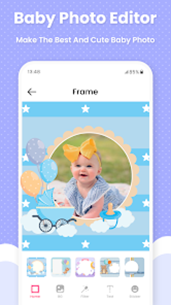 هذا التطبيق سهل الاستخدام ويوفر واجهة مستخدم جميلة. يدعم جميع دقات شاشة الأجهزة المحمولة والأجهزة اللوحية، مما يضمن لك إمكانية تحرير صور طفلك وصور الحمل بسهولة.